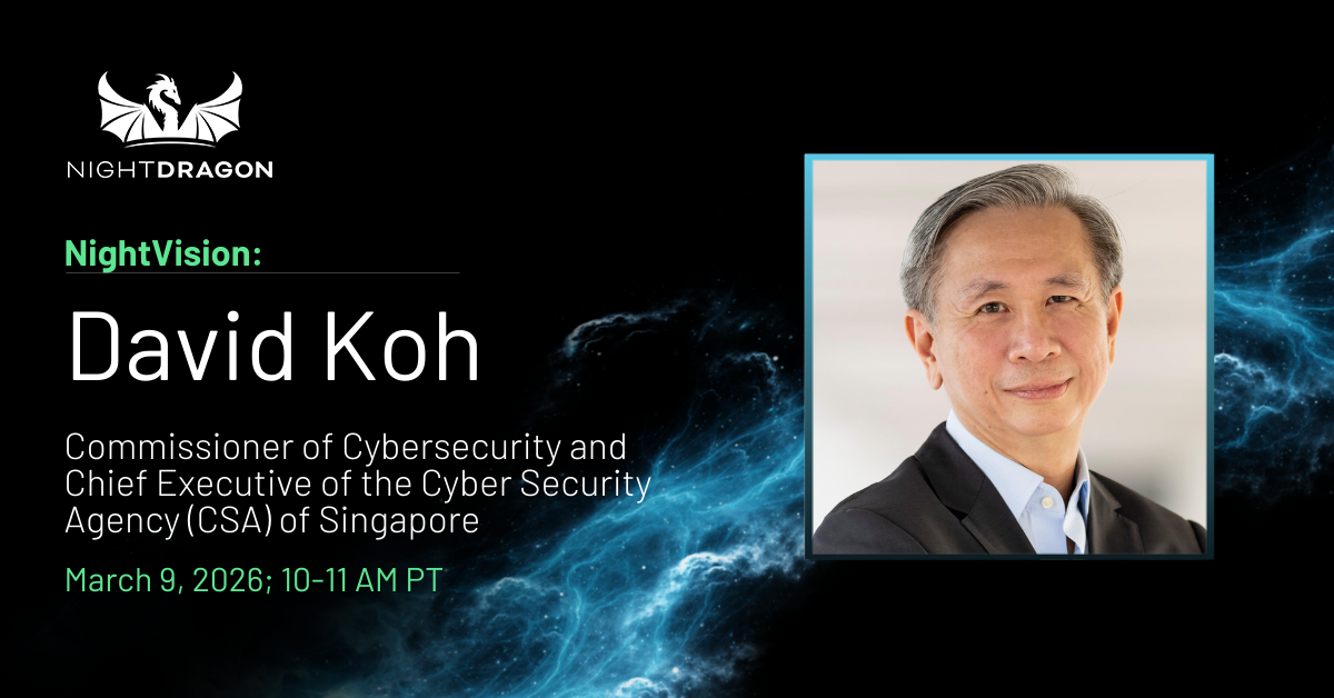 Join us for an exclusive NightVision fireside chat with David Koh, Commissioner of Cybersecurity and Chief Executive of the Cyber Security Agency of Singapore, and NightDragon Founder and CEO Dave DeWalt.